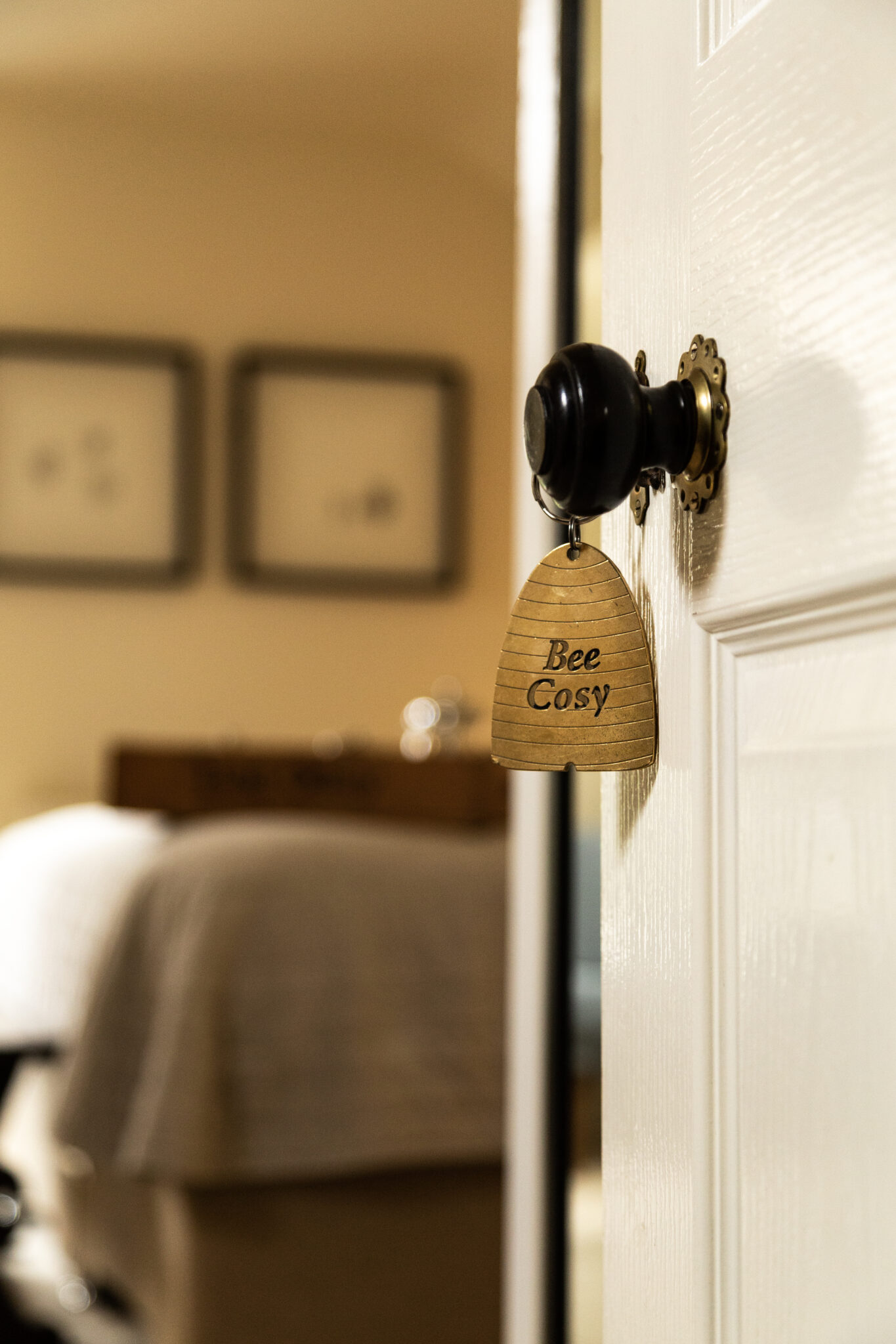 Bee Cosy sits at the top of the house and is the quietest and most tucked away of all our rooms. A spacious & comfortable superking room with bath. If you want calm, privacy and modern luxury in a homely setting, this is the perfect retreat. Guests often comment on how well they sleep here, and many describe it as their favourite luxury boutique accommodation for Northwich.